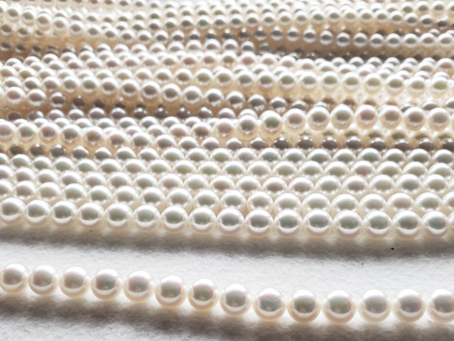 日本産アコヤ真珠(無調色、エンハンスメント)ネックレス 3.5〜5.0ミリ